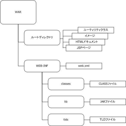 WAR Web Archiveファイル。Webベースのアプリケーションに対するコンテナです。