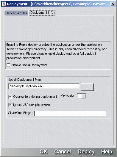 入力しなければならない情報は、配備する先のサーバによって異なります。[Deployment]ダイアログボックスには、指定したサーバに関連する情報のみが表示されます。