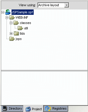 注記: Workbenchでは、希望の方法でファイルを整理し、ファイルの場所をWARファイルに必要な構造にマップすることができます。JSPページおよびWorkbenchを初めて操作する場合は、JSP開発に慣れるために、まずWAR仕様に一致するようにファイルを整理することが推奨されます。その後、希望の方法でファイルを整理するWorkbenchの柔軟性を利用できます。詳細については、『ツールガイド』の「 プロジェクトおよびアーカイブ」を参照してください。
