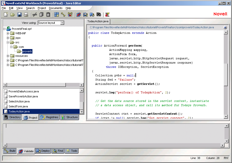 ここでは、TodayAction.javaが開きました。このコードは、今日のことわざの表示を誰かが要求したときに実行されます。