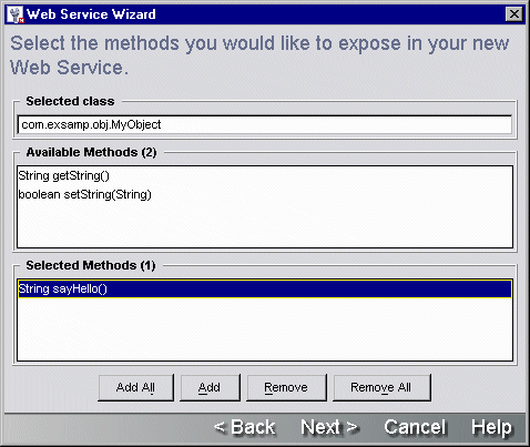 [Add]および[Add All]ボタンを使用して、[Available Methods]から任意の数の項目を[Selected Methods]に移動します。