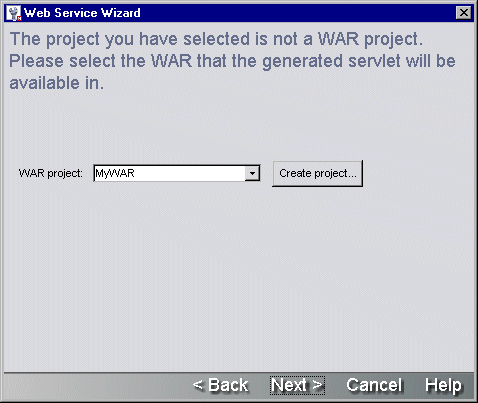 WebサービスのサーブレットをマップするWARプロジェクトを選択します。このオプションを使用すると、現在Workbenchで開いているWARプロジェクトを選択できます。 |