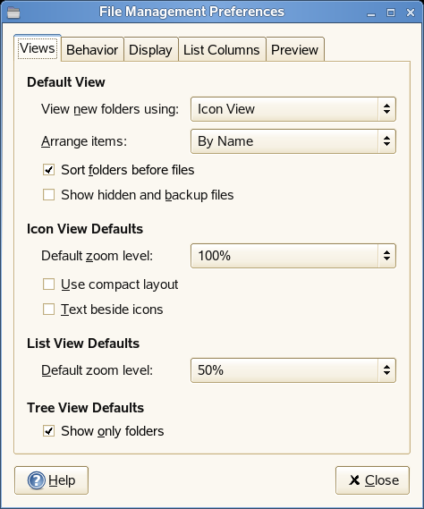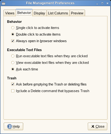 Tabell 1-6 Alternativer for Oppførsel i filbehandleren