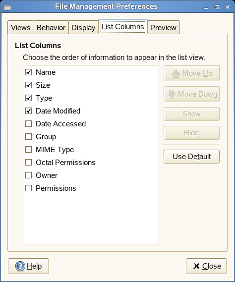 Figur 1-10 Kategorien Listekolonner i filbehandleren