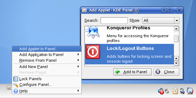 I dialogboksen som kommer fram, velger du applet??? som skal legges til og klikker . Appleten settes inn i panelet.