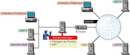 Os seguintes componentes do BorderManager são usados para implementar este cenário, conforme mostrado em Figura 7-6: