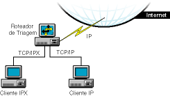 O Gateway IP da Novell fornece segurança no nível do circuito, ativando os clientes IPX e IP na rede local para acessar a Internet sem precisar atribuir endereços IP únicos globalmente a cada sistema local. Se um endereço único já tiver sido atribuído a cada cliente, o Gateway IP da Novell permite que você oculte os endereços IP da sua rede local da Internet.