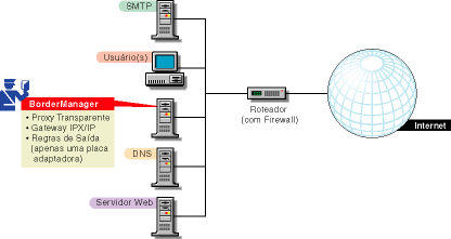 Os seguintes componentes do BorderManager são usados para implementar este cenário, conforme mostrado em Figura 7-5: