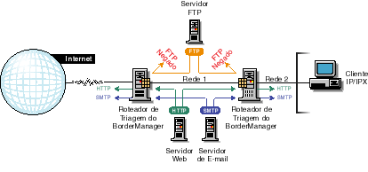 Um firewall pode ser formado por vários componentes. O BorderManager fornece uma solução abrangente de firewall que inclui os seguintes serviços: