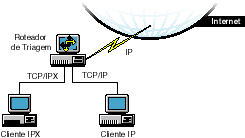 Um host triado usa uma combinação de um host de bastião e um roteador de triagem, como é mostrado na Figura 1-3. O roteador de triagem aumenta a segurança, fornecendo acesso à Internet para negar ou permitir determinado tráfego a partir do host de bastião. É a primeira parada para o tráfego, que poderá continuar somente se o roteador de triagem deixá-lo passar.