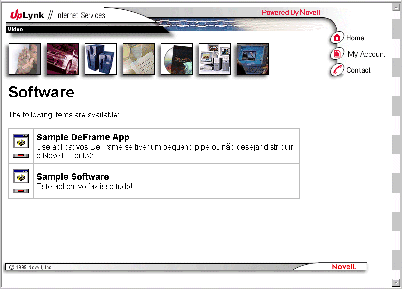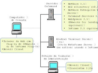 O OnDemand Services pode usar o DeFrame 2.0 para distribuir aplicativos de software do Windows a clientes. Ao contrário do ZENworks for Desktops, o DeFrame não requer o Novell Client nem instala arquivos de aplicativo na estação de trabalho. Em vez disso, um plug-in é adicionado ao browser da Web do cliente, que permite à estação de trabalho funcionar como um terminal para ver o aplicativo da forma como está sendo executado em um Windows Terminal Server ou Citrix MetaFrame Server.