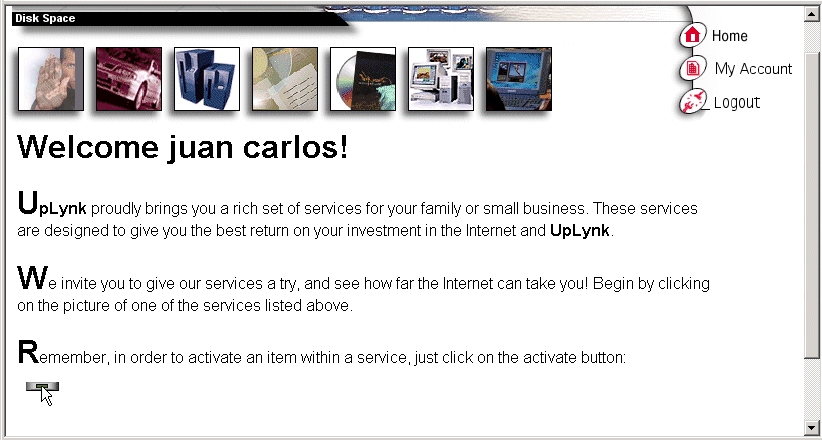 A página Services (Serviços) também inclui um link My Account (Minha Conta) que permite aos clientes mostrar as compras feitas durante o mês atual ou no mês anterior.