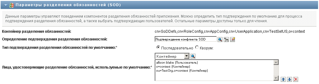 Чтобы настроить параметры разделения обязанностей (SoD):