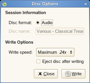 Например, вы можете выгрузить компакт-диск по окончании записи, установив флажок .