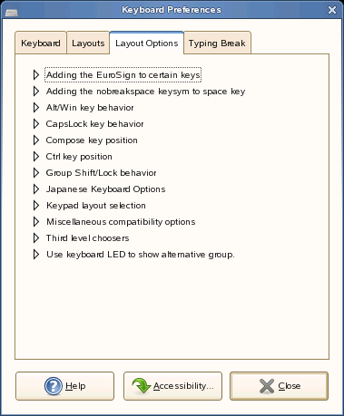 Используйте вкладку "Параметры раскладки" для задания параметров раскладки клавиатуры. Эти параметры определяют действия, выполняемые при нажатии определенных клавиш, и другие настройки клавиатуры.