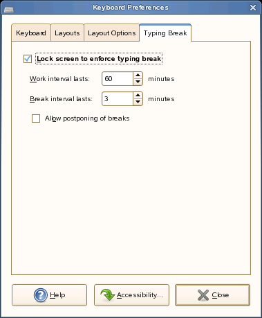 Рисунок 2-5 Диалоговое окно "Параметры клавиатуры" - вкладка "Перерыв в работе"