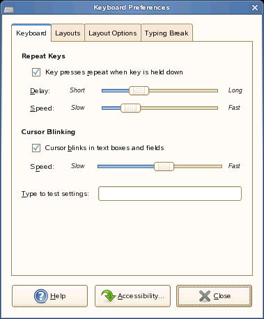 Используйте вкладку "Клавиатура" для задания главных параметров клавиатуры.