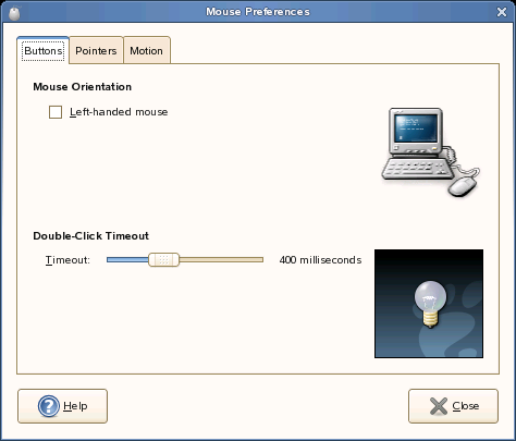Используйте страницу с закладками "Кнопки", чтобы указать, будут ли кнопки мыши настроены для левши. Можно также настроить задержку между щелчками для двойного щелчка.