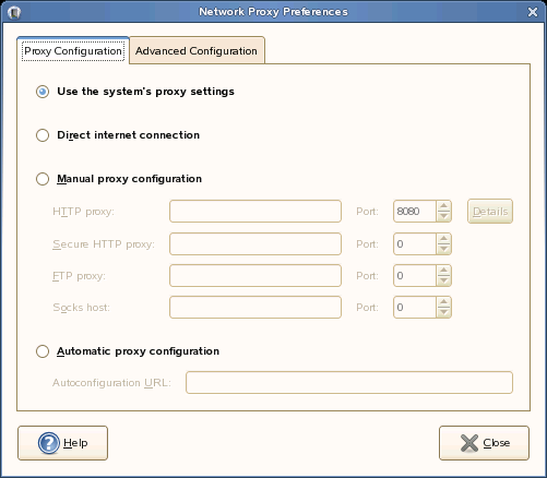 Рисунок 2-27 Диалоговое окно "Конфигурация прокси-серверов сети"