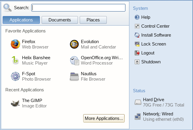 Подключение к сети возможно через проводные и беспроводные соединения. Чтобы просмотреть состояние Вашего сетевого соединения, щелкните В области главного меню значок показывает состояние Вашего подключения к сети. Например, на следующем рисунке компьютер подключен к проводной сети при помощи соединения Ethernet.