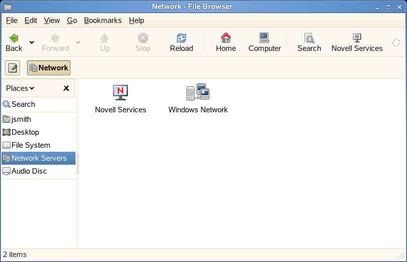 Чтобы получить доступ к общим сетевым ресурсам Novell, дважды щелкните значок . Будет отображен список доступных Вам общих сетевых ресурсов Novell.