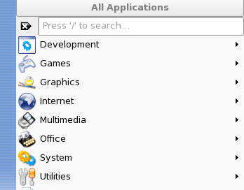 Som standard finns det längst till vänster på panelen en ikon som öppnar huvudmenyn (i KDE kallas den även K-menyn). Den har samma funktion som start-knappen på skrivbordet i MS Windows. Huvudmenyn innehåller en välordnad struktur för åtkomst till de vanligaste programmen. Den innehåller dessutom menyalternativ för ofta använda funktioner, till exempel utloggning och sökning efter program. Mer information finns i Område 1.3.1, Använda huvudmenyn.