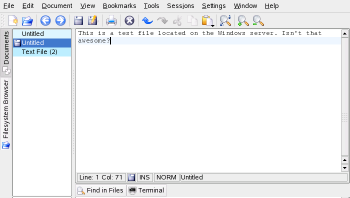 Du kan använda de olika KDE-programmen, till exempel texteditorn Kate, för att öppna, arbeta med och spara filer på Windows-servern.