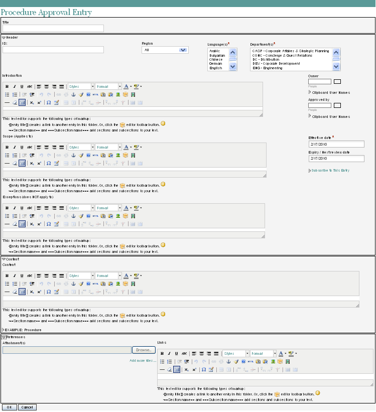 DESCRIPTION: This form was designed to meet the operating procedure management needs of a large company, but it can be scaled to work for any size of business. The form is intuitive and effective, and allows the entry of all information relevant to a change in operating procedures or protocols. The form has been designed for international use, with location and language identifiers, so it is already prepared for broad deployment.