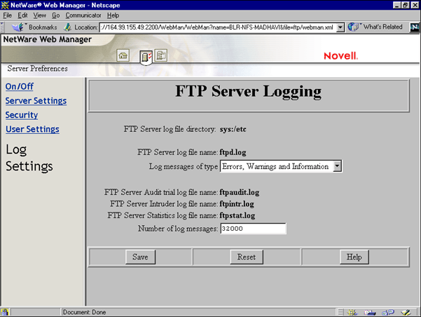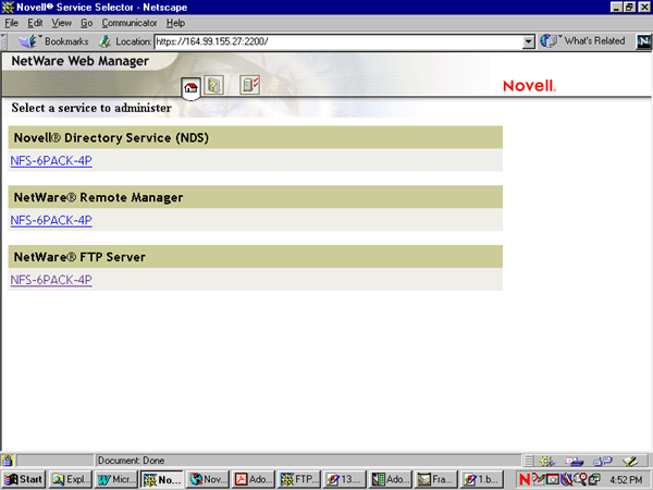 You can use the NetWare Web Manager for administering FTP Service from client- side.To do this, enter the following URL to display the Service Selector panel (the default port number is 2200):