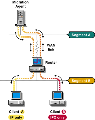 The problem could be solved by placing a Migration Agent in Segment B as shown in the following figure.